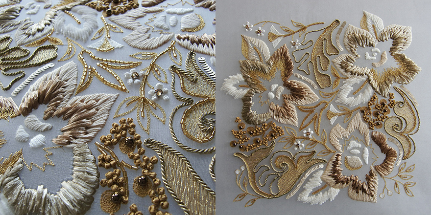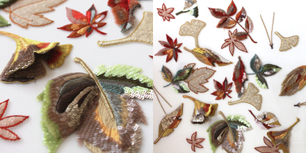 ビーズやスパンコールは使わず、刺繍糸やコードなどで様様な表現に挑戦して行きます。