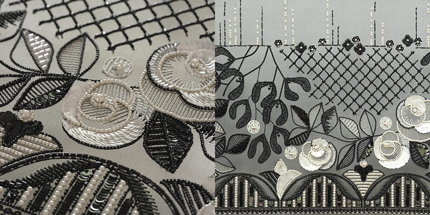 生地と生地の間にスパンコールを閉じ込めたり、3Dの様な立体テクニックも登場します。
